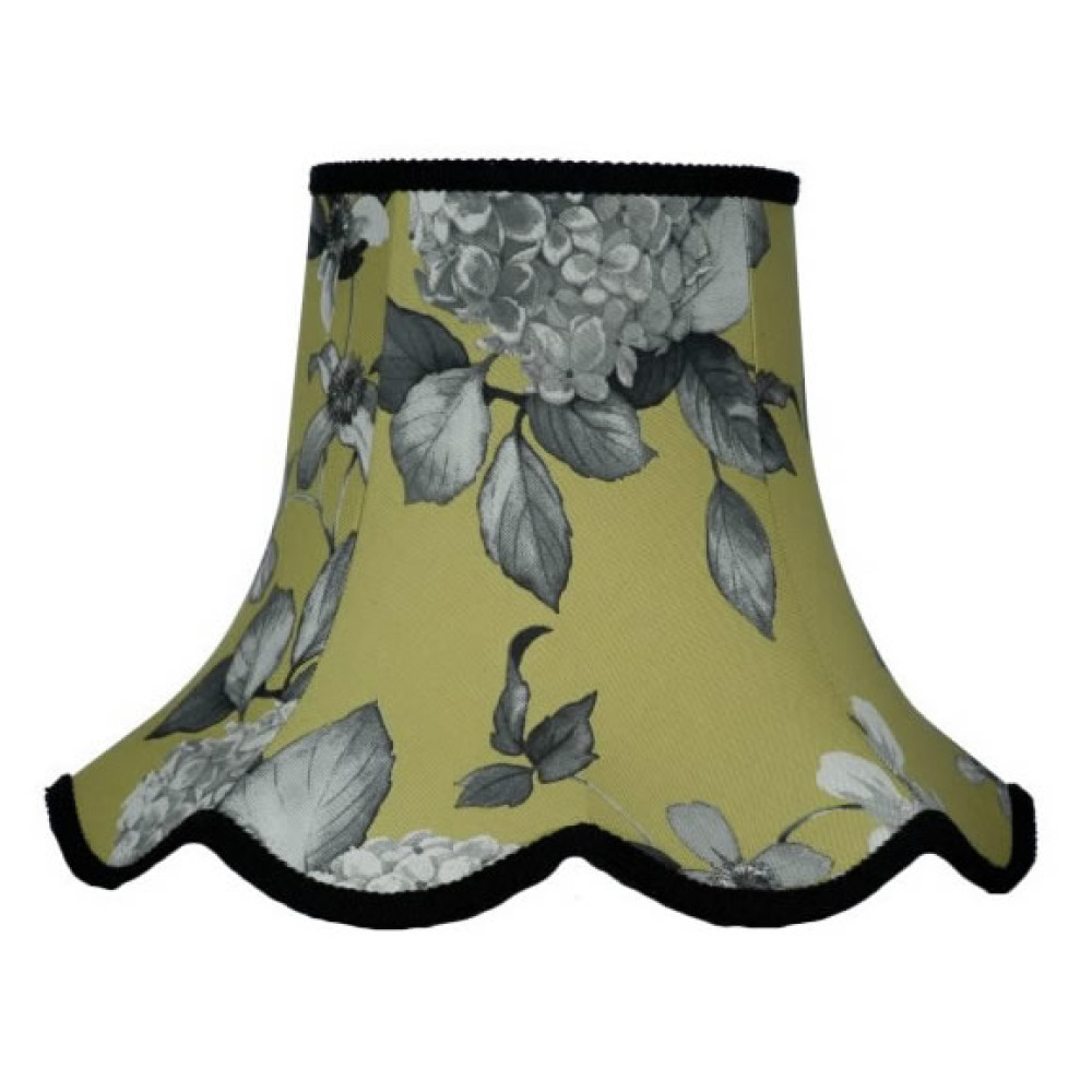 A twist on a classic, this simple scallop lampshade in olive green features a bold, graphic large hydrangea print. For a quick contemporary pick-me-up for your living space, pair this shade up with neutral shade walls and soft furnishings.