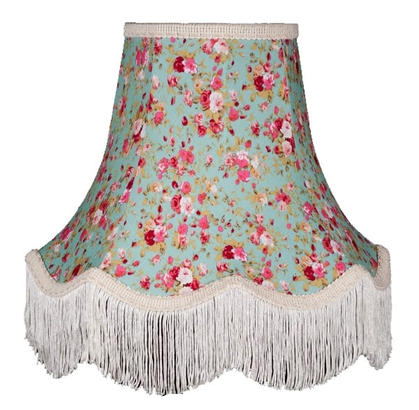 Maybe you’d prefer something a bit more fresh and feminine? This vintage style pastel green lampshade adorned with delicate pink flowers may be just your thing. Available in scallop style with white braid and matching fringe, it will add an English country garden feel to your bedroom.