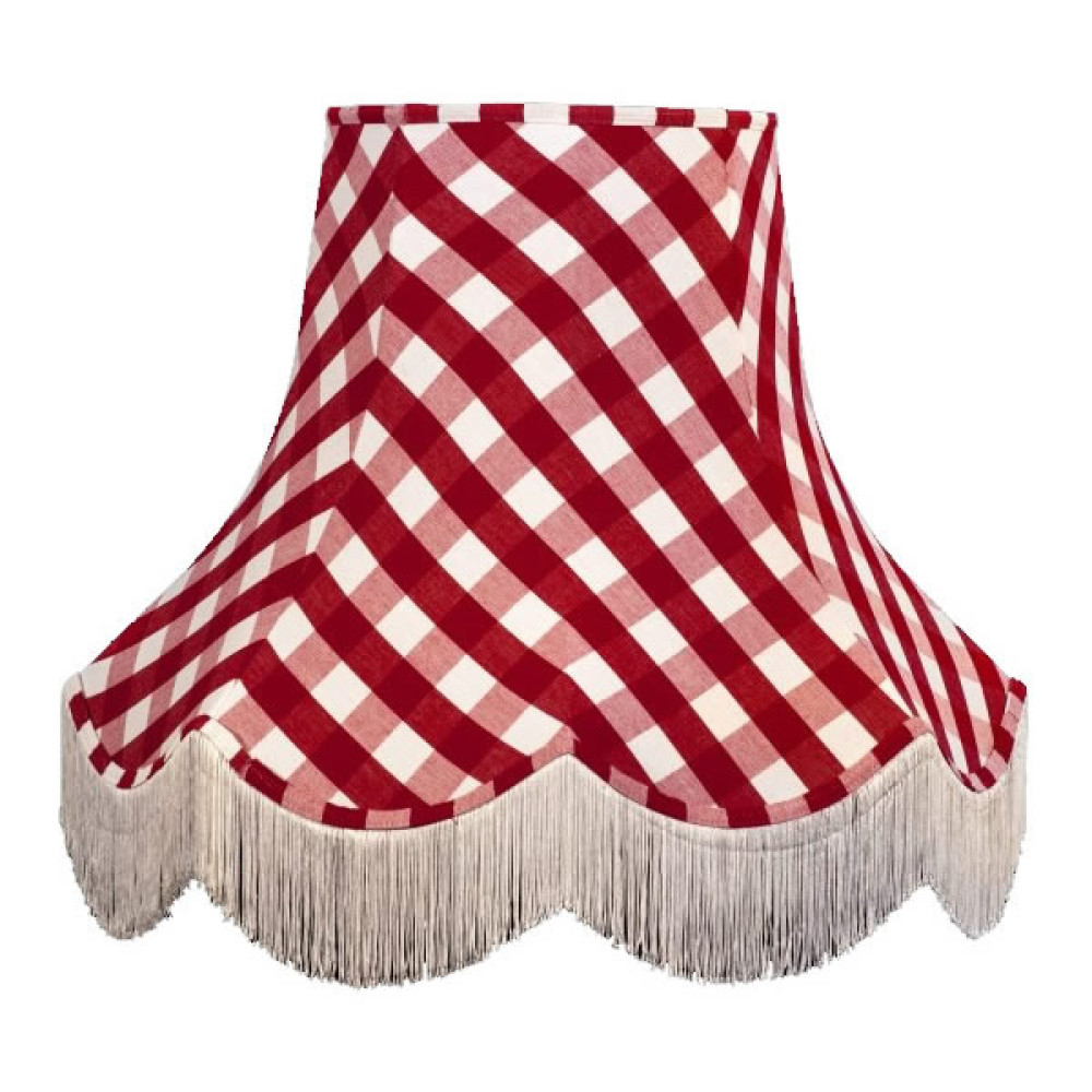 A bowed empire lampshade dressed in a vibrant red Gingham check fabric that echoes Brigitte Bardot’s famous Gingham wedding dress, this lampshade is ideal for farmhouse interiors and shabby-chic collections alike. With the top and bottom of the frame adorned with a pom-pom bobble trim, this red lampshade is guaranteed to brighten any dark corner. Shabby chic doesn’t come much more stylish than this!