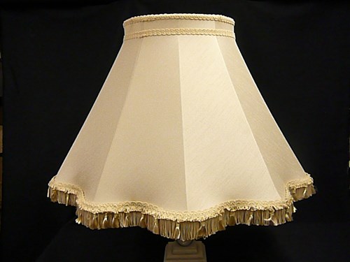 We totally stripped it down to the bare frame and give it a quick rub down with some wire wool and then wiped it with white spirits getting it ready for spraying in a white enamel gloss spray paint. Then we left it to dry for several hours while we made the new covers in a plain cream dupion fabric and a cream stretch lining for the inside of the antique lamp shade restoration. The day after, when the frame had dried, we recovered the lampshade with the new covers we had made the previous day, then lined it in the stretch lining we had already prepared. Dame Janet sent me a small piece of her new carpet she had fitted and wanted me to best match it with our braid and tassel fringe. In the next set of pictures you can see the finished lamp shade and i have to be honest it was not the easiest i have ever restored. Dame Janet was so very kind to email me some pictures of the bespoke lampshade in situ and you can see from the pictures the antique lamp shade restoration project looks stunning in her living room.