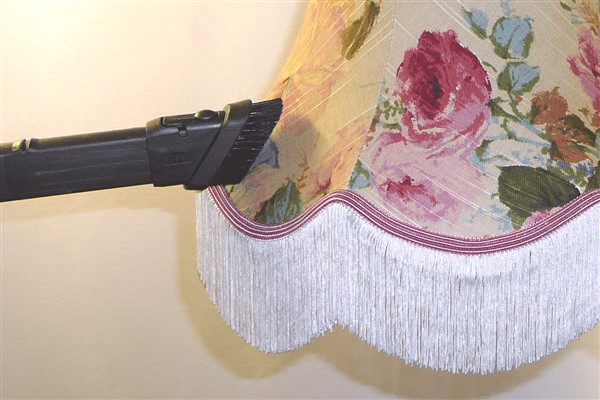 Removing dust and animal hair from a fabric lampshade can be achieved with something as simple as your hair dryer set on full speed, however when using an hair dryer it is very important to hold it approximately 8 to 10 inches away from the lamp shades. This is so you don’t scorch the fabric. You can also use an Hoover with tools that can be placed on to the lamp shade using a very gentle up and down movement taking care not to press on to the fabric to hard. Another way is to use some very sticky tape, like masking tape, pressing it on to the fabric firmly but making sure you don't damage the fabric. You have to remember that silk fabric etc becomes quite brittle over a period of time due to the heat from the bulb; this is why it’s imperative to always use the correct wattage bulb, which will prolong the life of your fabric lamp shade. Pulling the sticky tape off will remove most hair and dust. Another alternative is brushing your lamp shades with a clothes brush giving it a quick brush every couple of weeks, keeping the lamp shades looking smart and clean.